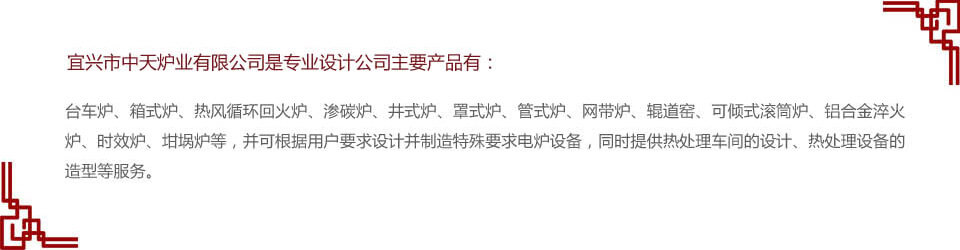 宜興市中天爐業(yè)有限公司是專業(yè)設(shè)計(jì)、制造各種工業(yè)電爐、淬火水槽等熱處理設(shè)備的公司。